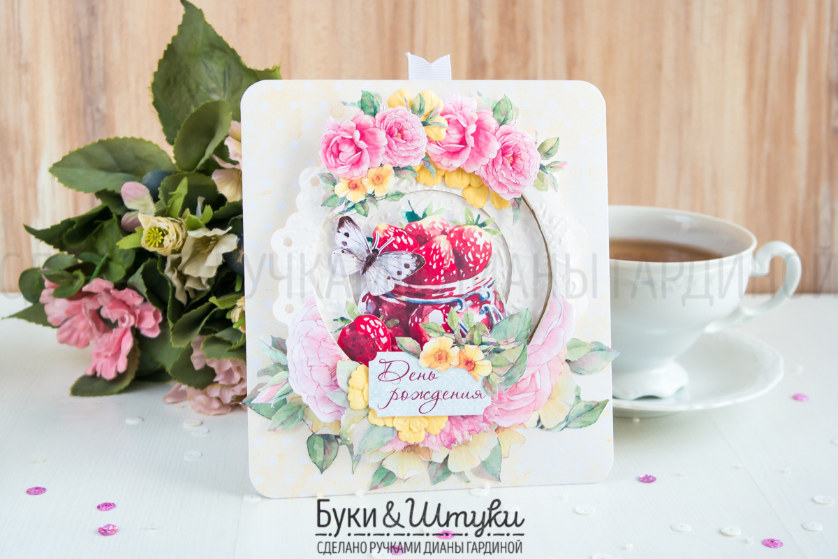 А начну я со своей самой последней открытки для любимой бабушки)) Это открытка в формате конверта с многослойной тоннельной композицией.